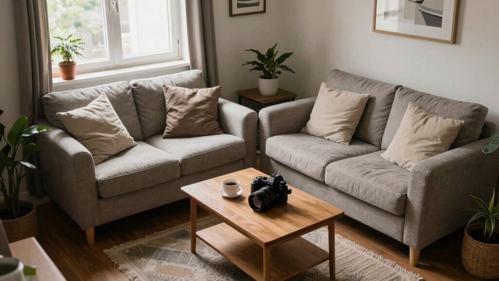 Ultimately, the key is to experiment with different angles and lighting setups to find what works best for your space. Remember, the goal isn’t just to fit everything into the shot but to present it in a way that feels inviting and spacious. By thoughtfully applying lighting techniques and framing strategies, you can transform small rooms from confining spaces into open, welcoming environments that viewers want to explore.