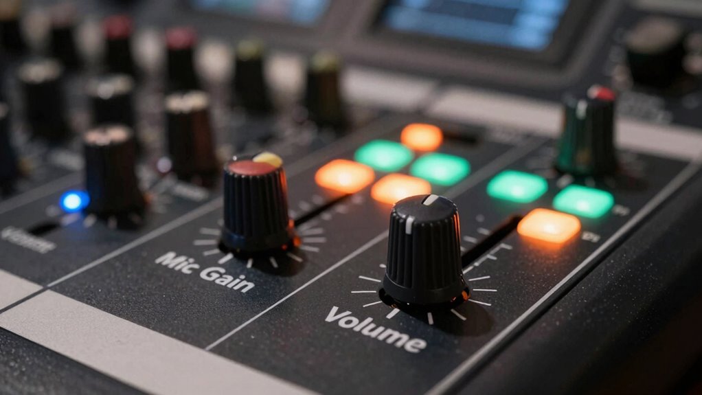 Mic gain is the control that sets how strongly your microphone’s signal is amplified before it hits the rest of your audio chain. When you increase gain, you’re fundamentally making the microphone’s input louder, which can be useful if your source is quiet. However, turning up the gain too much risks clipping—when the signal exceeds the maximum level the system can handle—resulting in distortion and a harsh, unpleasant sound. Proper microphone calibration involves finding that sweet spot where the gain is high enough to capture all the nuances of your performance but not so high that it causes clipping or distorts the audio. This careful adjustment helps maintain audio dynamics, ensuring the natural ebb and flow of sound are preserved. Additionally, understanding the technical specifications of your equipment can aid in more precise calibration.