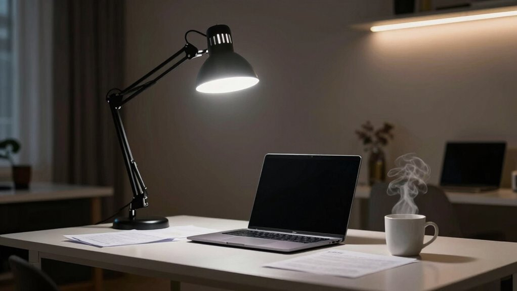 Selecting the right fixture types and styles is essential to creating effective task lighting that meets your needs. The fixtures you choose should complement your space while providing focused illumination where you need it most. For example, adjustable desk lamps give you flexibility, while under-cabinet lights are perfect for kitchens. Consider the style to match your decor—sleek, modern fixtures work well in contemporary spaces, whereas vintage or industrial designs add character. Think about ease of use and installation, too. Here are some popular options: