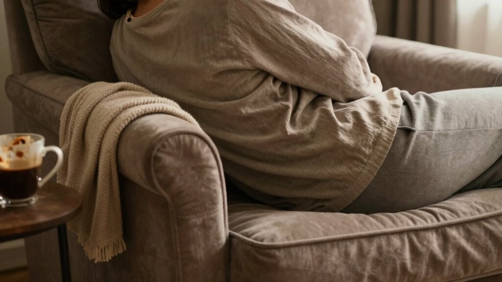 Sedentary risks are another major concern tied to seemingly comfortable seating. If you find yourself spending hours in the same position, whether working at a desk or lounging on the couch, you’re exposing yourself to the dangers of prolonged inactivity. Sitting for extended periods weakens your core muscles and reduces spinal support, making your back more prone to pain and injury. Even if your chair feels supportive initially, remaining seated for too long without breaks can lead to muscle tightness and poor circulation, which only worsens discomfort. Comfort doesn’t necessarily mean movement, and staying sedentary increases the risk of developing back problems over time. Recognizing sedentary risks and taking steps to stay active can significantly improve your back health. Incorporating proper ergonomics into your daily routine can also help mitigate these risks. Additionally, maintaining good posture throughout the day is essential to prevent long-term issues. Being aware of the importance of active sitting can further help you avoid these pitfalls.