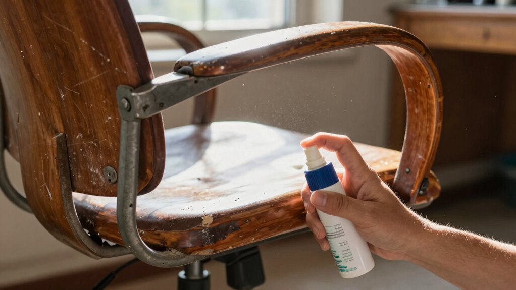 Using household oils on your chair can be safe if you choose the right ones and follow safety precautions. Avoid harsh or thick oils like cooking oils, which can gum up or damage the mechanism. Instead, opt for light lubricants like silicone spray or WD-40, and apply sparingly. Always test a small area first, guarantee good ventilation, and wipe away any excess to prevent buildup and assure smooth, safe operation.