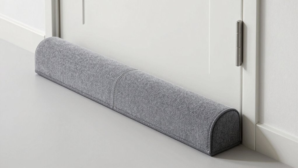 Ever wondered what makes a draft stopper truly effective at blocking sound? It all comes down to the material’s thickness and density, which directly impact its ability to absorb noise and prevent sound from leaking through. A foam core wrapped in soft fabric can block up to 80% of ambient noise, considerably improving soundproofing. Seals that fit snugly against the door and cover gaps up to 1.5 inches are more efficient than loose-fitting options, reducing sound leaks. The acoustic properties of the material, like sound absorption coefficients, also play a vital role in how well it dampens sound waves. Ultimately, proper installation that ensures full contact with the door surface minimizes gaps and maximizes overall soundproofing effectiveness, providing a quieter office environment.