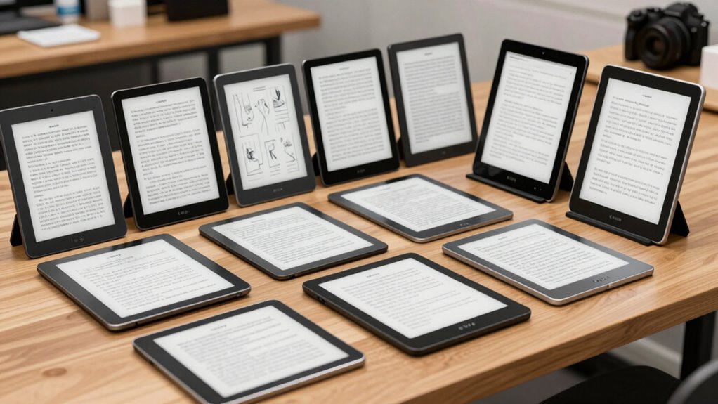 If you’re looking for the best E-Ink tablets in 2026, I’ve got you covered with a list of 14 top options, from the Kindle Scribe to the BOOX Note Air 5 C, all packed with stunning displays, stylus support, and extended battery life. These devices excel at reading, note-taking, and creative tasks, blending portability and high performance. Keep going, and I’ll show you what makes each of these stand out.