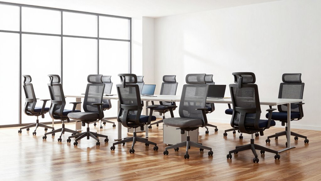 Have you ever felt discomfort because your office chair doesn’t adapt to your body? That’s where adjustability and flexibility come in. An ergonomic chair should have adjustable lumbar support to match your lower back’s natural curve, easing strain during long hours. Being able to modify seat height, backrest tilt, and armrest positioning allows for personalized comfort and better posture. Flexible headrests and backrest angles help you find the perfect seating position, relieving pressure points and encouraging movement. Micro-adjustments for lumbar support, like depth and height, ensure a precise fit for your spinal needs. Additionally, adjustable tension and tilt lock functions maintain your chosen recline angle and stability, making it easier to switch tasks and stay comfortable throughout the day.