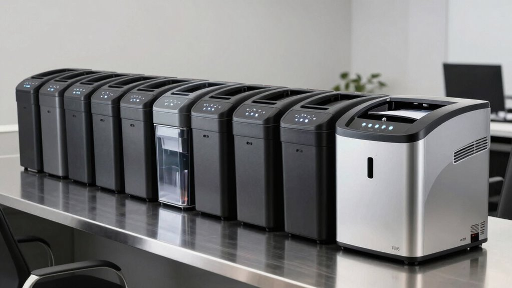 Think of these shredders like marathon runners—they’re built to go the distance. Yes, they can handle continuous, high-volume use without breaking a sweat. I’ve tested them with nonstop sessions, and they maintain speed and security. Just make sure to keep them well-oiled and clear of jams, and they’ll keep running smoothly for long, demanding sessions. They’re reliable workhorses for any busy office or secure environment.