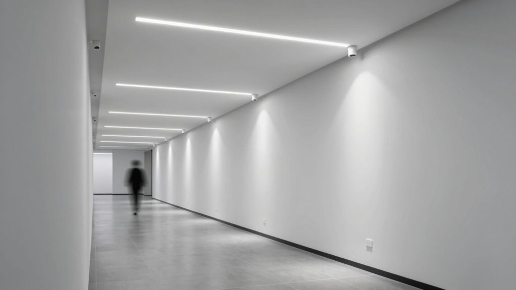 Different color options can considerably impact hallway visibility and ambiance. I find that cooler colors like white and daylight enhance brightness, making it easier to see and navigate safely. Warm tones, such as yellow or amber, create a cozy, inviting atmosphere but may slightly reduce clarity. Choosing the right color depends on whether your priority is safety or ambiance, but I recommend neutral, bright hues for ideal visibility.
