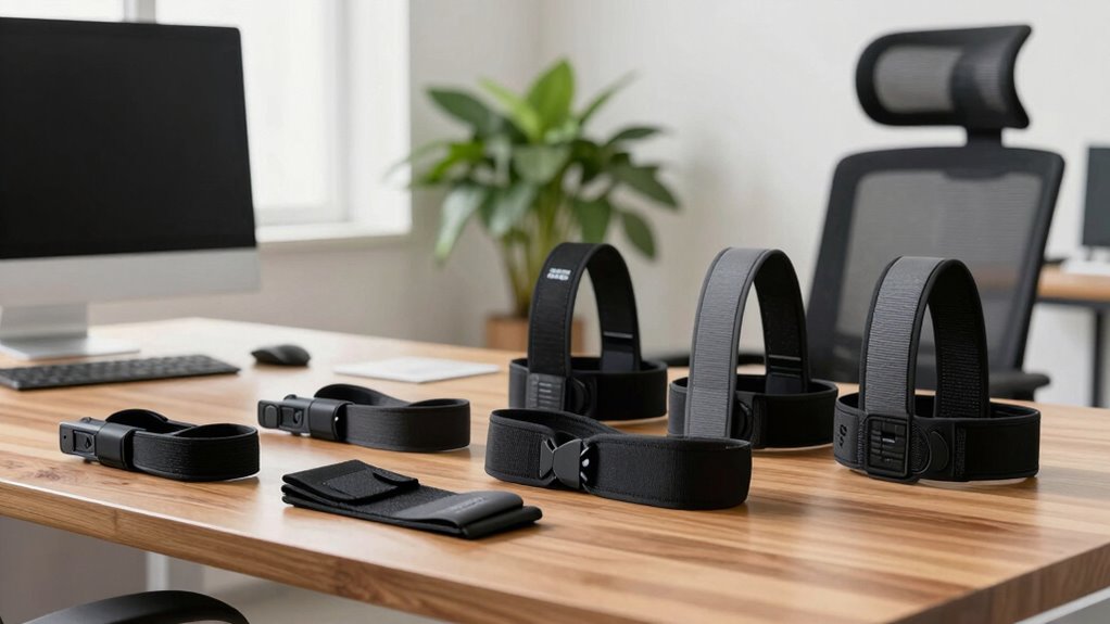Durability and longevity are vital factors to contemplate when selecting a premium posture brace for desk work. High-quality materials like reinforced mesh, sturdy fiberglass supports, and strong stitching ensure the brace can withstand daily wear and tear. The support rods, especially those that are removable fiberglass stays, play a key role in maintaining support over time. Breathable fabrics, such as mesh, help prevent material breakdown caused by sweat and frequent washing, extending the brace’s lifespan. Reinforced seams and secure fastenings reduce the risk of tearing or fraying with regular use. Additionally, proper maintenance—like careful cleaning and correct storage—can considerably boost the durability of your posture support, making it a reliable, long-lasting investment in your comfort and health.