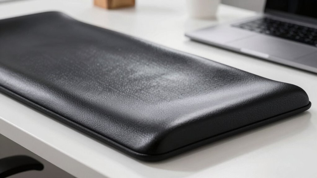 I recommend replacing your standing desk mat every 1 to 2 years, depending on usage and wear. If it starts to flatten, crack, or lose cushioning, it’s time for an update. I keep an eye on mine regularly and swap it out when it no longer provides adequate support. Staying proactive guarantees comfort and helps prevent fatigue or discomfort during long work sessions.