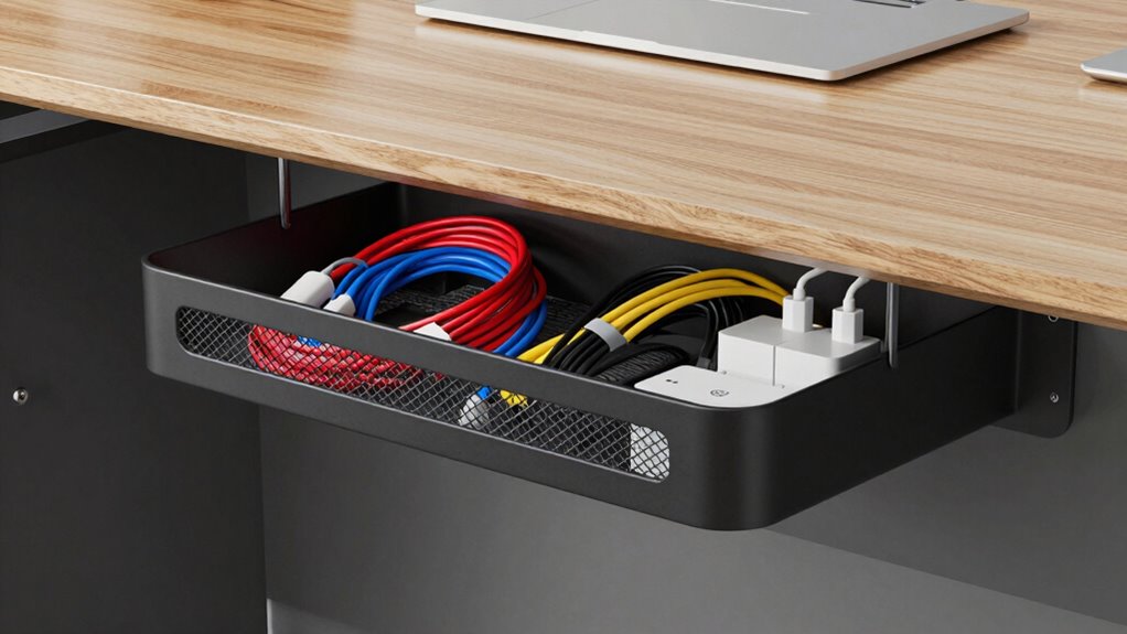 So, there you have it—my top picks for heavy-duty under desk cable trays in 2026. Think of these trays as the sturdy backbone of your workspace, keeping chaos at bay and your cables flowing smoothly. With the right tray, your desk becomes a well-orchestrated symphony of organization. Don’t let tangled cords steal your focus—grab one that fits your needs and watch your workspace transform from chaos to calm.