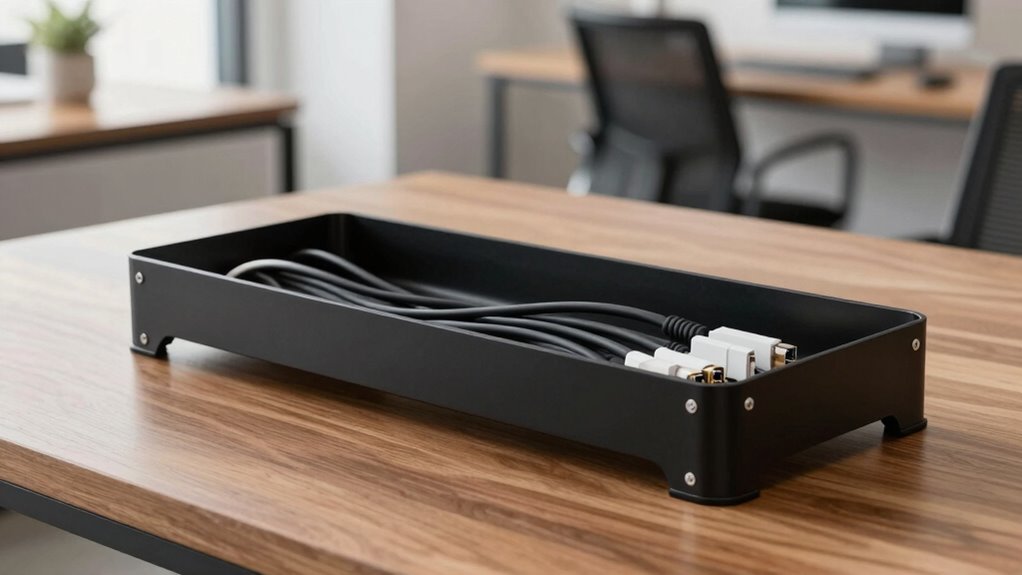 Choosing the right heavy-duty under desk cable tray is like planting a sturdy tree in your workspace—it supports your entire day’s flow and keeps chaos at bay. When you pick one that’s reliable and strong, you’re creating a foundation of order and calm amid the busy forest of cords. Let your choice be the roots that hold everything steady, so you can focus on growth and productivity without worry.