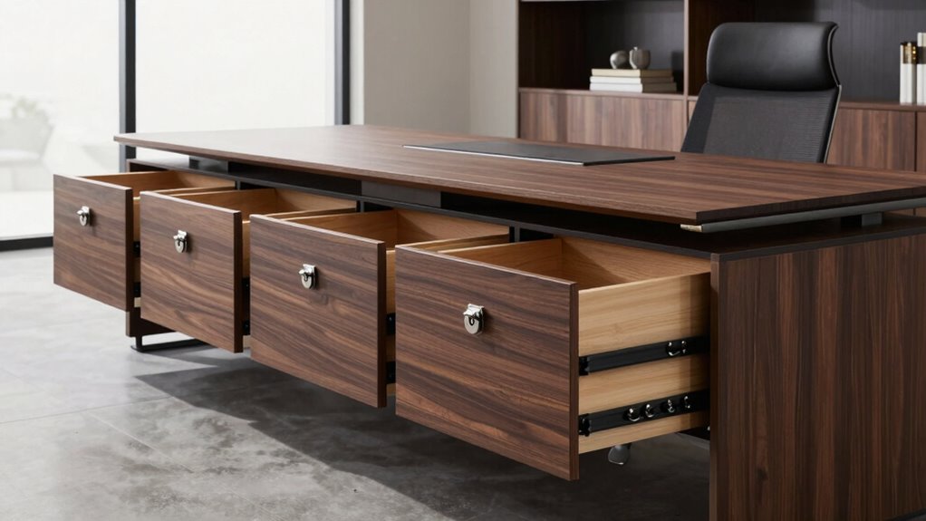 Did you know that over 60% of businesses integrate their lockable drawers into their existing security systems? I can tell you that lockable under desk drawers easily connect with most security setups through electronic access control or smart integrations. This seamless connection enhances security, allowing you to monitor and control access remotely. I recommend checking compatibility with your current system to guarantee smooth integration and maximum protection.