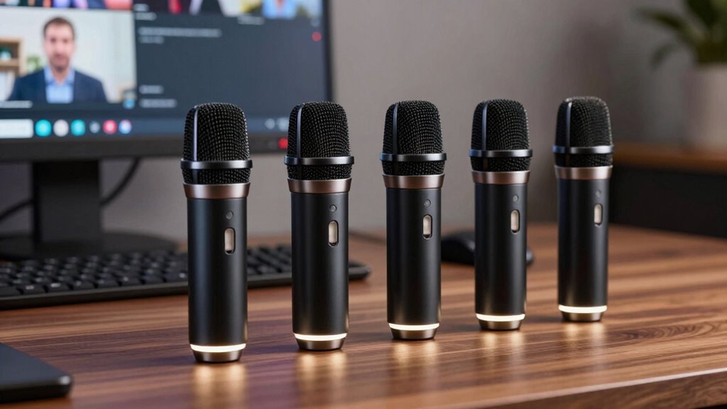 Choosing the right USB microphone is like selecting a trusted co-pilot for your Teams calls—helping you navigate conversations smoothly and professionally. With options like noise cancellation, portability, and easy controls, you’ll find one that fits your needs perfectly. Remember, a good microphone isn’t just a gadget; it’s your voice’s best friend, ensuring you’re heard loud and clear every time you hit that join button. Let your sound quality soar!