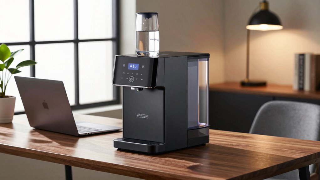 A portable water dispenser can be a game-changer for a flexible home office setup, but selecting one that’s lightweight and compact makes all the difference. Look for models with a built-in rechargeable battery or USB power option so you can place them anywhere without relying solely on outlets. Durability is key—choose dispensers made from BPA-free plastic or stainless steel to ensure safety during movement. Ease of installation matters too; features like bottom-loading designs or quick-connect hoses simplify refilling and maintenance. A sleek, modern look with minimal external components helps the dispenser blend seamlessly into various interior styles while keeping portability in mind. Ultimately, a well-designed, lightweight dispenser enhances convenience and flexibility, making your workspace more adaptable and organized.